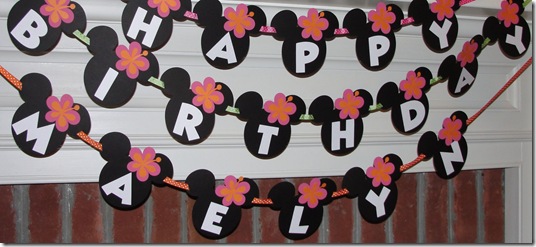 I was contacted back months ago to do a Minnie Mouse Luau party and I thought “Oh, what fun!” I could not find the perfect papers locally so we went out on the web and found Hawaiian paper in just the colors needed for the party. We threw in some hibiscus flowers on Minnie and the turn out was great.