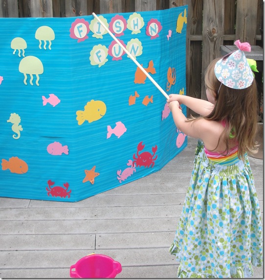 This is the fishing game I made, the girls had a blast could not get enough of this game. It was so easy to make out cardboard and wrapping paper.